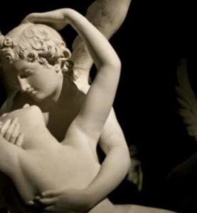 In una sala trasmettono un video dedicato ad Amore e Psiche… estasiate rimaniamo a guardare.