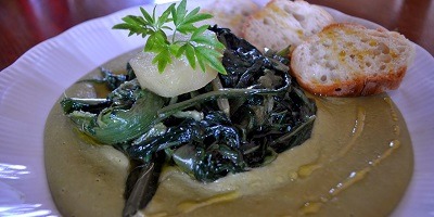 Una cicoria in vellutata di ortaggi con pecorino “pietragallese” e piccante abbrustolito il tutto con crostini alla brace e vino rosso di Santa Venere (il mio vino)…