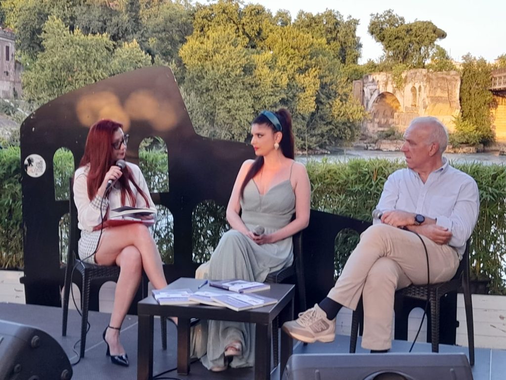 La presentazione si è svolta nella splendida cornice che vede come protagonista il Lungotevere, nei pressi della suggestiva Isola Tiberina, nel tratto in cui Ponte Cestio sovrasta il poderoso scialacquio del fiume, come se fosse un arcobaleno.