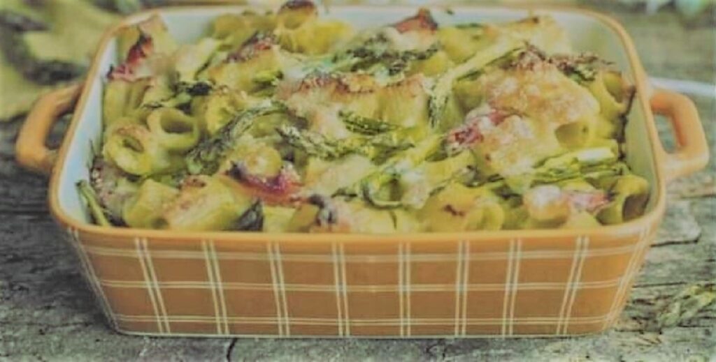 Pasta al forno prosciutto cotto e asparagi, mozzarella e besciamella.