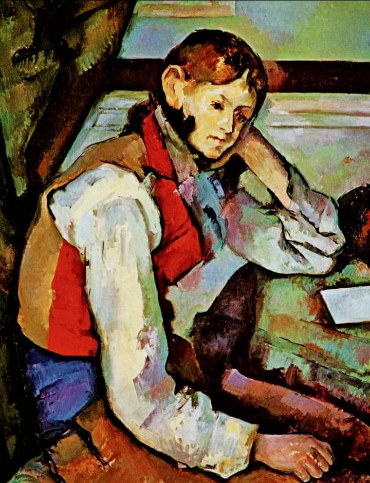 Nel “Ragazzo dal panciotto rosso“, Cézanne volutamente, ma anche in quasi tutte le sue composizioni, non rispetta le proporzioni.