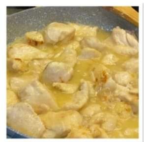 Quando il succo degli agrumi è sfumato aggiungiamo il latte e facciamo restringere fino a creare una salsa cremosa che renderà morbidi,saporiti e squisiti i bocconcini di pollo.