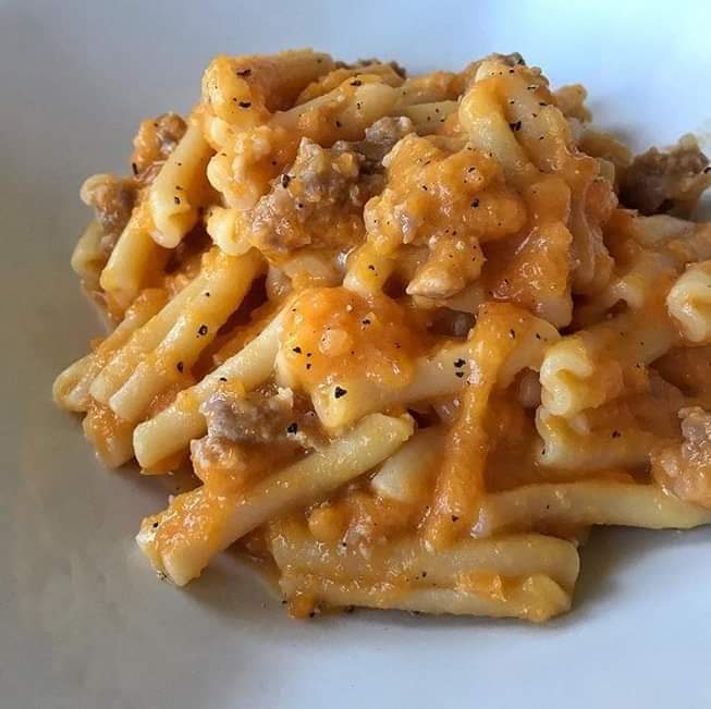 I rigatoni ai quattro sapori sono rigatoni conditi con zucca,salsiccia, provola e parmigiano, connubio perfetto per il periodo invernale.