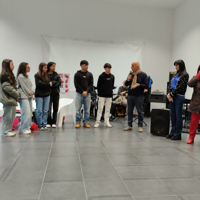 Alle spalle dei relatori spiccava un cartellone dove erano impresse impronte di mani di colore rosso, ognuna di esse riportava scritta dai ragazzi del Liceo Campanella che sono stati chiamati da Caterina Nero per leggere ciò che vi era scritto. Tutto il pubblico presente ha apprezzato i vari interventi, gli applausi hanno raggiunto l’acme quando la professoressa Talarico ha consegnato la sua opera ai parenti di Adele Bruno.